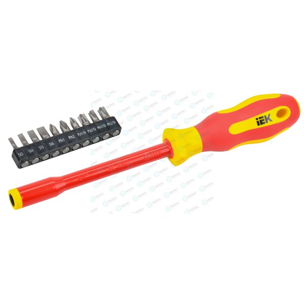 Отвертка диэлектрическая с набором бит, Т2, 11шт, IEK A2L5-SC30-T2-N1-11