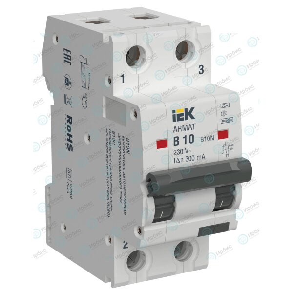 ARMAT Автоматический выключатель дифференциального тока B10N 2P B10 300мА тип A IEK