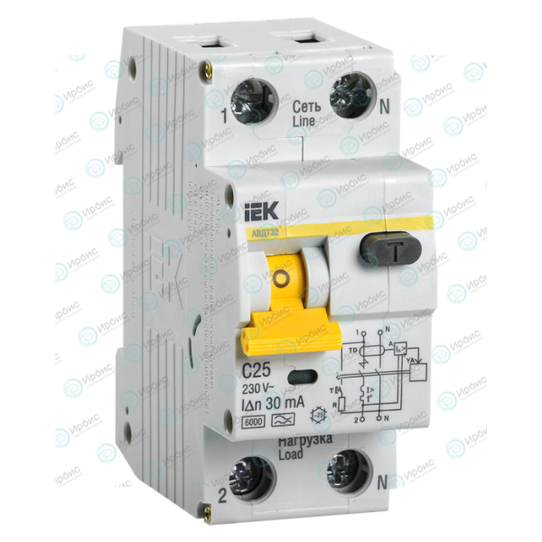 Выключатель автоматический АВДТ 32 C25, 30мА, тип A, IEK MAD22-5-025-C-30
