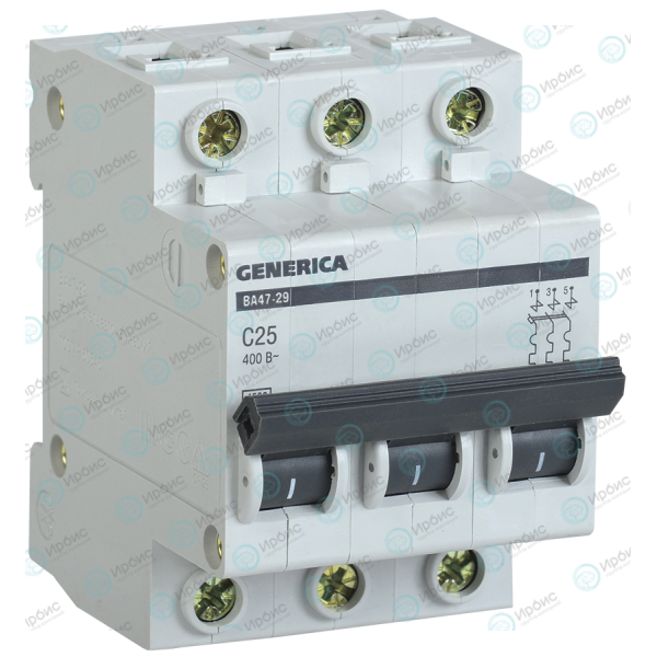 Выключатель автоматический ВА47-29, 3Р, 25А, 4,5кА, х-ка С, GENERICA MVA25-3-025-C
