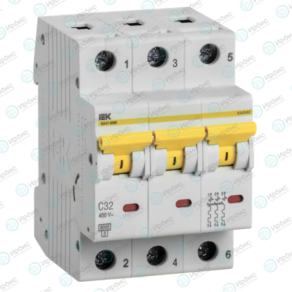 Выключатель автоматический ВА47-60M 3P 32A 6кА х-ка C, IEK MVA31-3-032-C