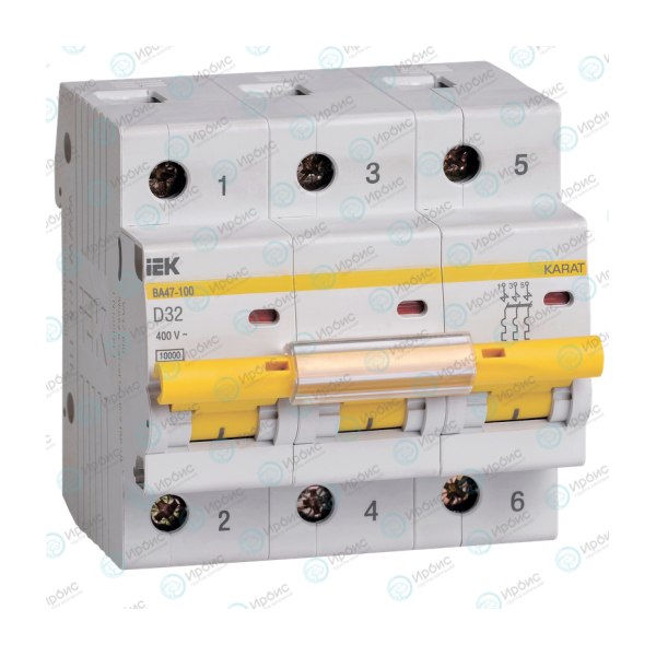 Выключатель автоматический ВА47-100 3Р 32А 10кА х-ка D, IEK MVA40-3-032-D