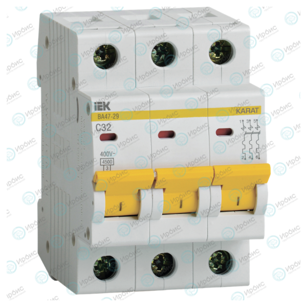 Выключатель автоматический ВА47-29 3P 32А 4,5кА х-ка С, IEK MVA20-3-032-C