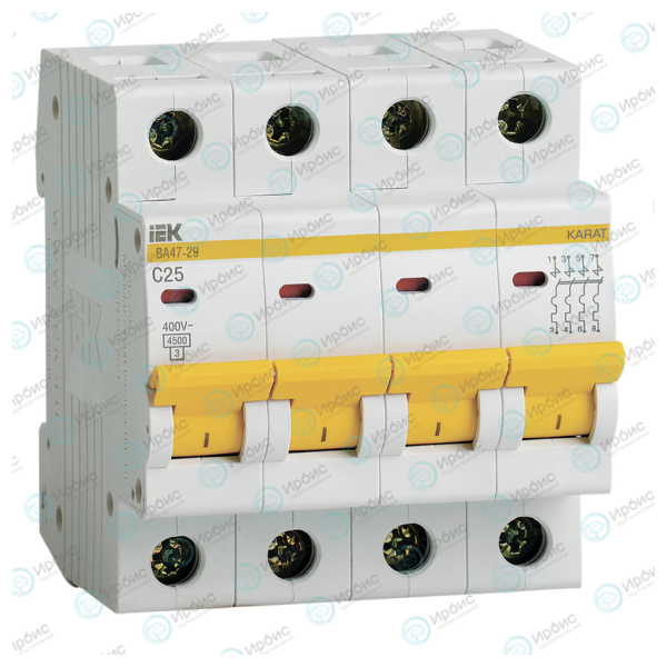 Выключатель автоматический ВА47-29 4Р 25А 4,5кА х-ка С, IEK MVA20-4-025-C