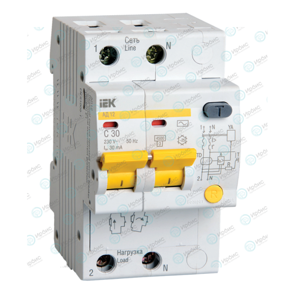 Автомат дифференциальный АД12 2Р 32А 30мА, IEK MAD10-2-032-C-030