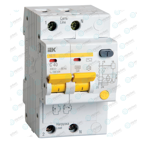 Автомат дифференциальный АД12 2Р 40А 100мА, IEK MAD10-2-040-C-100