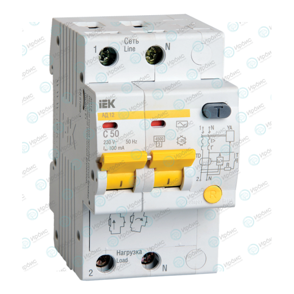 Автомат дифференциальный АД12 2Р 50А 100мА, IEK MAD10-2-050-C-100