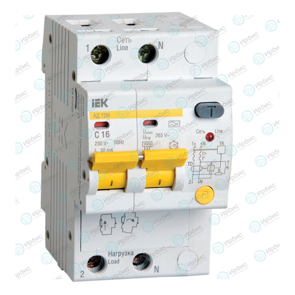 Автомат дифференциальный АД12М 2Р С16 30мА, IEK MAD12-2-016-C-030