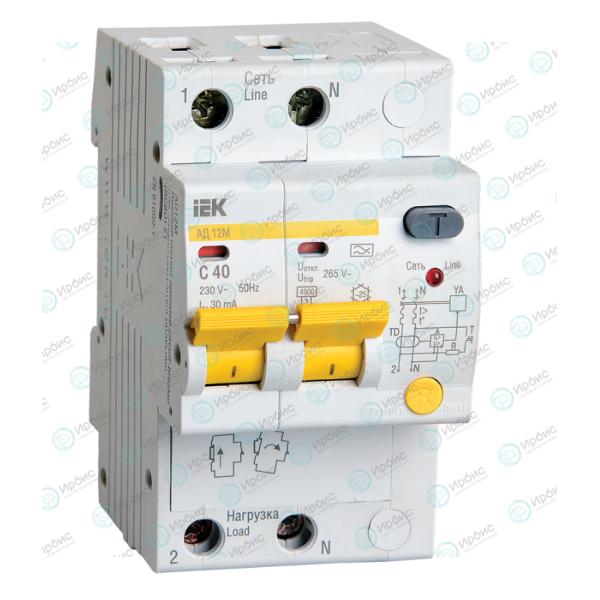 Автомат дифференциальный АД12М 2Р С40 30мА, IEK MAD12-2-040-C-030