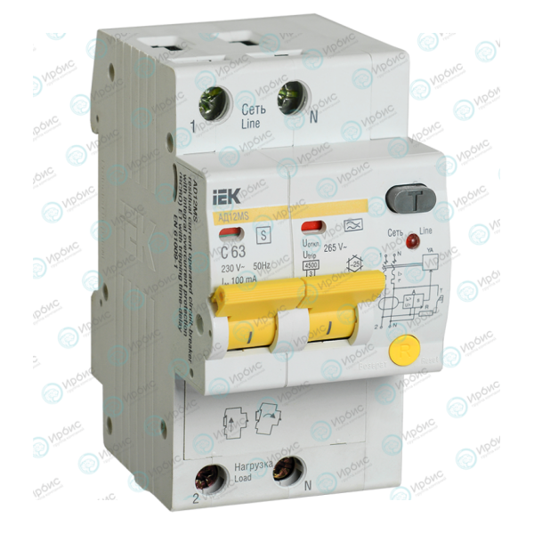 Автомат дифференциальный АД12MS 2Р 63А 100мА, IEK MAD123-2-063-C-100