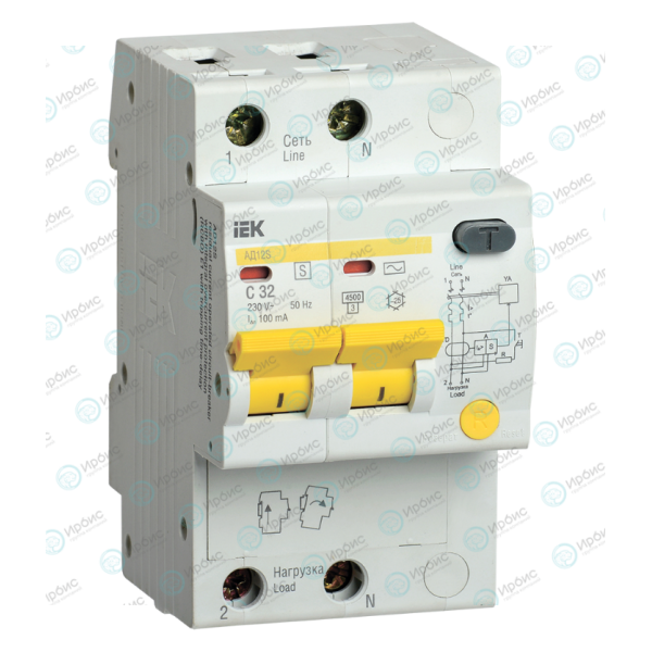 Автомат дифференциальный АД12S 2Р 32А 100мА, IEK MAD13-2-032-C-100