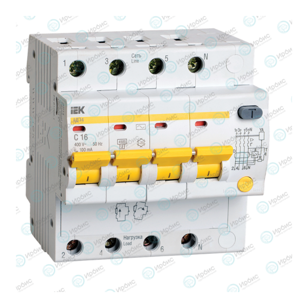 Автомат дифференциальный АД14 4Р 16А 100мА, IEK MAD10-4-016-C-100