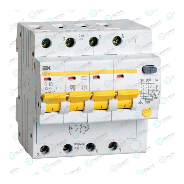 Автомат дифференциальный АД14 4Р 16А 300мА, IEK MAD10-4-016-C-300