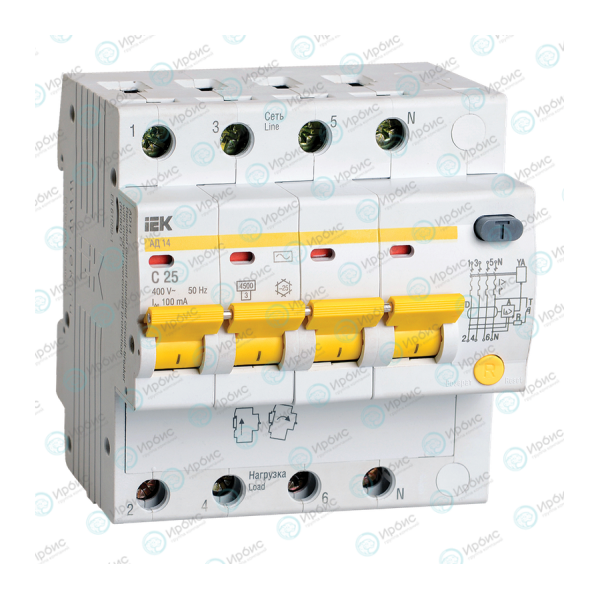 Автомат дифференциальный АД14 4Р 25А 100мА, IEK MAD10-4-025-C-100