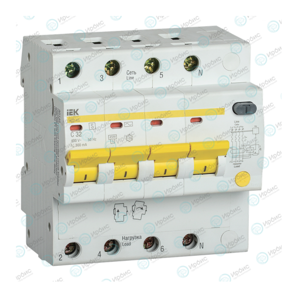 Автомат дифференциальный АД14S 4Р 32А 300мА, IEK MAD13-4-032-C-300