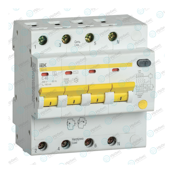 Автомат дифференциальный АД14S 4Р 40А 100мА, IEK MAD13-4-040-C-100