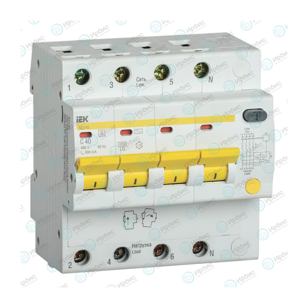 Автомат дифференциальный АД14S 4Р 40А 300мА, IEK MAD13-4-040-C-300