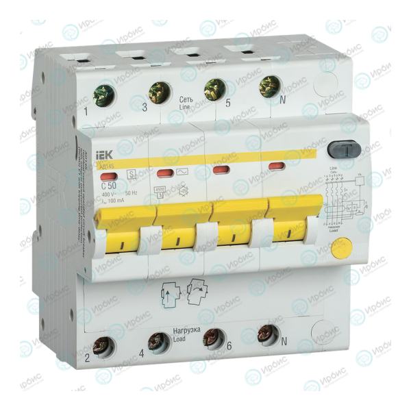 Автомат дифференциальный АД14S 4Р 50А 100мА, IEK MAD13-4-050-C-100