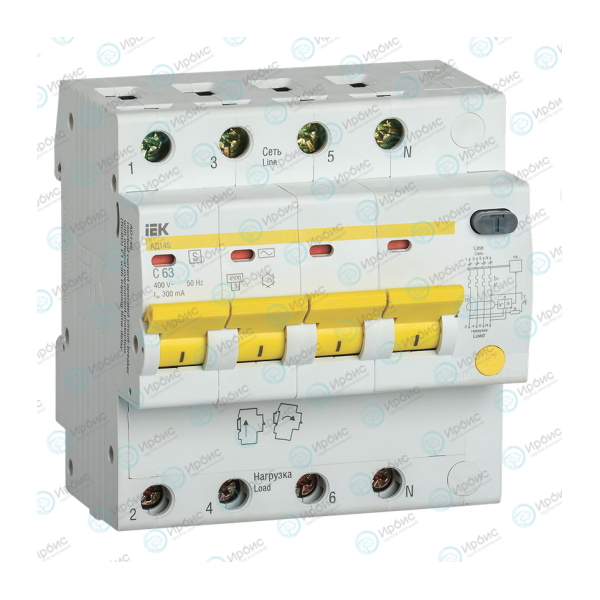 Автомат дифференциальный АД14S 4Р 63А 300мА, IEK MAD13-4-063-C-300