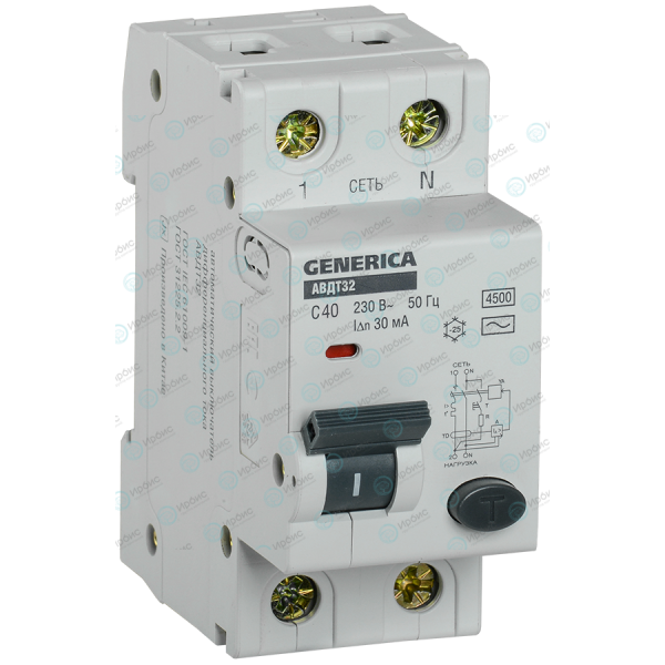 Выключатель автоматический дифференциального тока АВДТ 32, C40, GENERICA MAD25-5-040-C-30