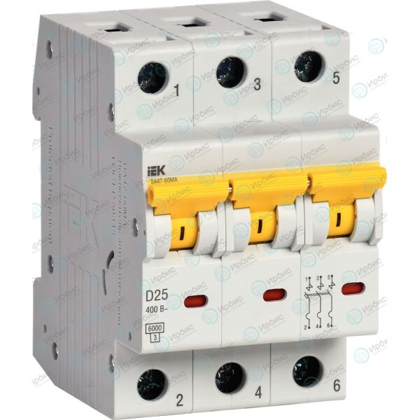 Автоматический выключатель ВА47-60МА без теплового расцепителя 3P 25А 6кА D IEK