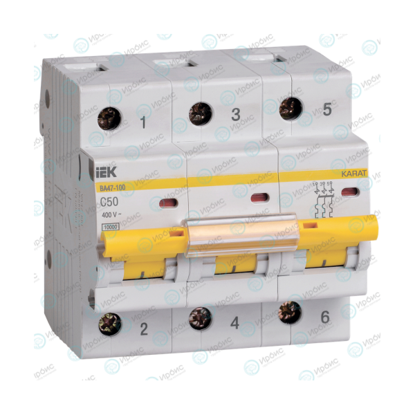 Выключатель автоматический ВА47-100 3Р 50А 10кА х-ка С, IEK MVA40-3-050-C