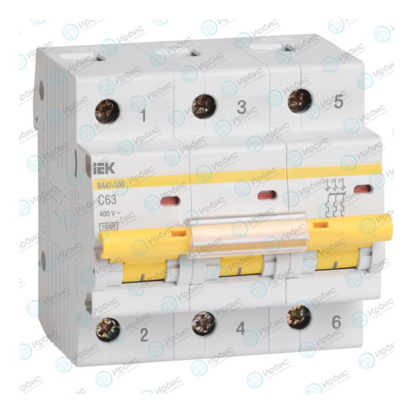 Выключатель автоматический ВА47-100 3Р 63А 10кА х-ка С, IEK MVA40-3-063-C