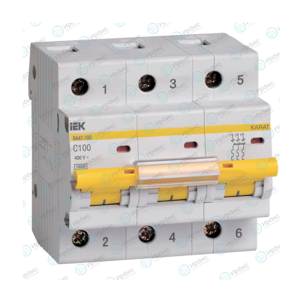 Выключатель автоматический ВА47-100 3P 100А 10кА х-ка С, IEK MVA40-3-100-C