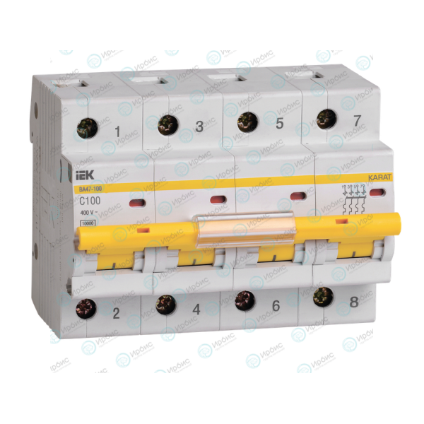 Выключатель автоматический ВА47-100 4P 100А 10кА х-ка С, IEK MVA40-4-100-C