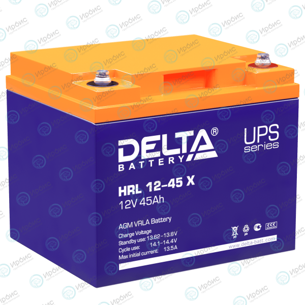 Батарея аккумуляторная HRL 12-45 X, (12В, 45Ач), DELTA 4614010610010