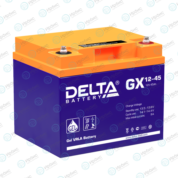 Батарея аккумуляторная GX 12-45, (12В, 45Ач), DELTA 4614010170014