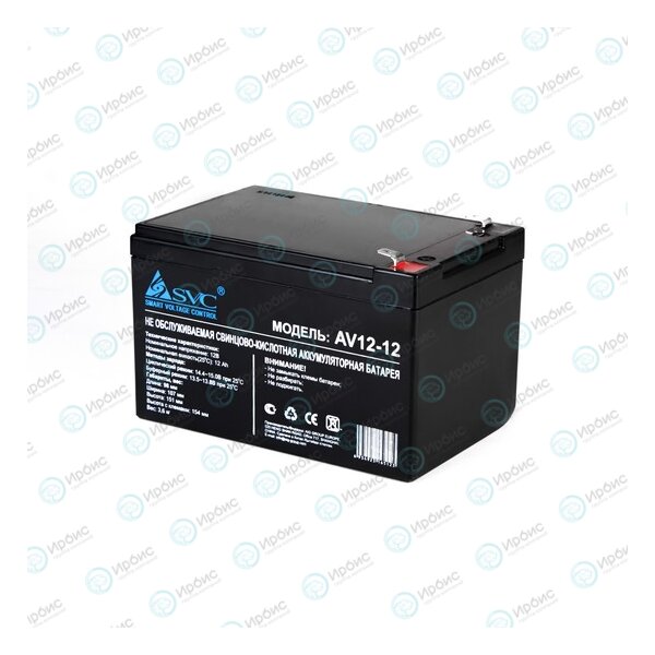 Батареи от компании SVC широко используются в устройствах, не требующих резервного питания, например в пожарных или охранных. Системы бесперебойного питания (UPS) являются основной сферой применения данных батарей. Это батареи из серии AV, которые являются не обслуживаемыми, поэтому они не нуждаются в доливке воды и предназначены для работы в циклическом режиме (они выдерживают до 600 циклов). Данные батареи имеют низкий уровень саморазрядки, что обеспечивает срок службы от 2 до 4 лет в буферном (резервном) режиме. Конструкция корпуса батареи является герметичной, что позволяет размещать ее в любом положении. Данные батареи являются лучшими в соотношении Цена/Качество.