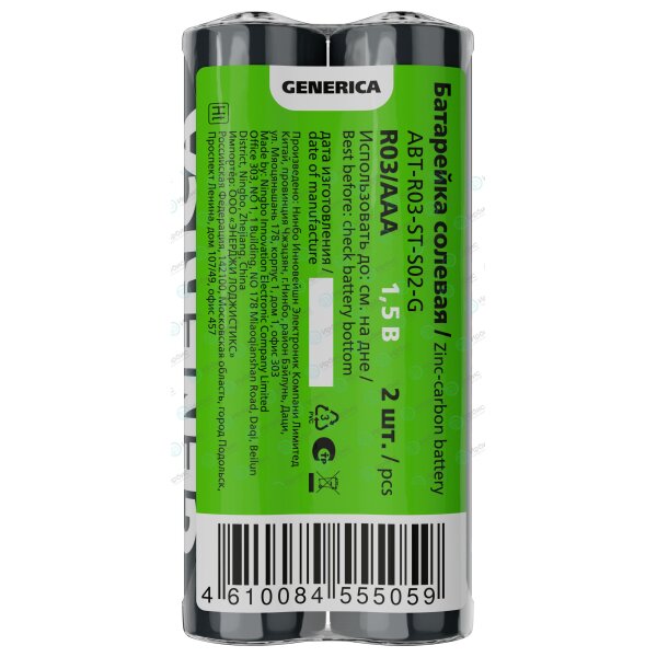Батарейки солевые мизинчиковые GENERICA AAA / R03, 2 шт. в пленке.