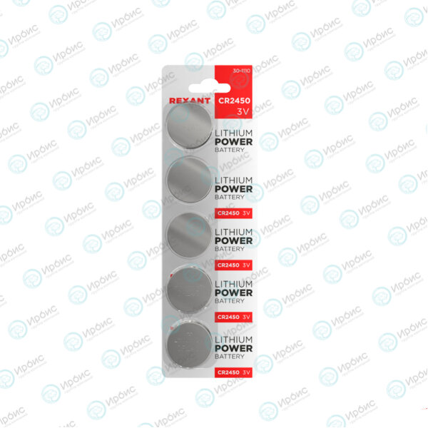 Батарейки литиевые CR2450, 3V, 580 mAh, уп.5шт., REXANT 30-1110