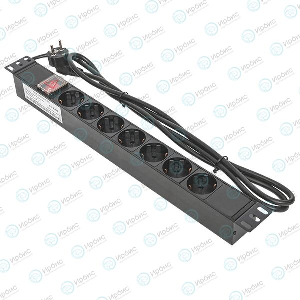 Блок PDU TERACOM 19" 1U 16А/250В 7 роз. Schuko с выключат. шнур 2 м 3x1,5 мм2 вилка Schuko корпус пл