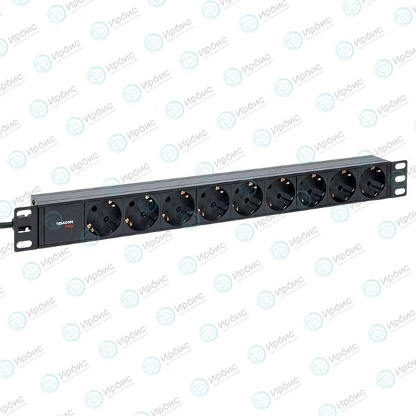 Блок PDU TERACOM PRO 19" 1U 10А/250В 9 роз. Schuko шнур 2 м 3x1,5 мм2 вилка C14 корпус алюминий черн