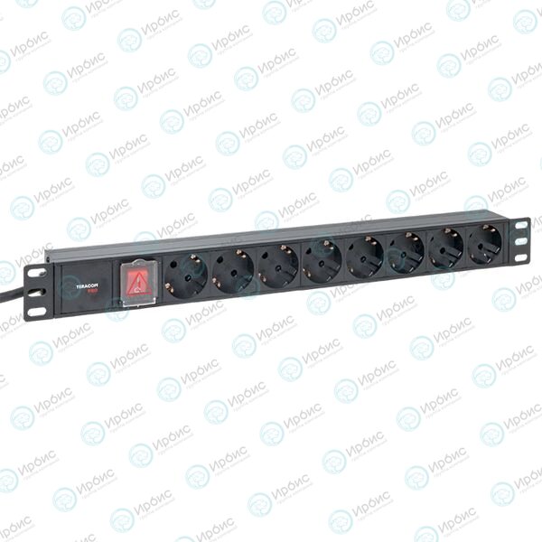 Блок PDU TERACOM PRO 19" 1U 16А/250В 8 роз. Schuko с выключат. шнур 2 м 3x1,5 мм2 вилка Schuko корпу