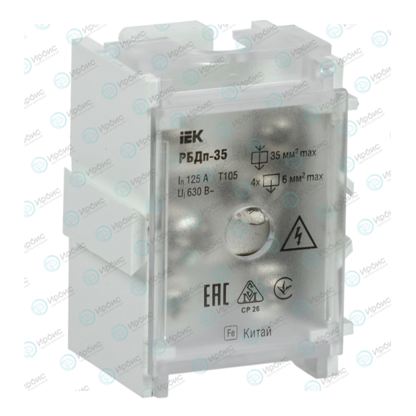 Блок распределительный проходной РБДп-35 125/50А на DIN-рейку (1х35-4х6мм2), IEK YRB30-1-125