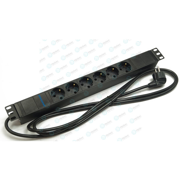 Блок розеток 19", 1U, 6 гнезд (Schuko), 16A, черный, кабель 2м, DANNMAN 7000800