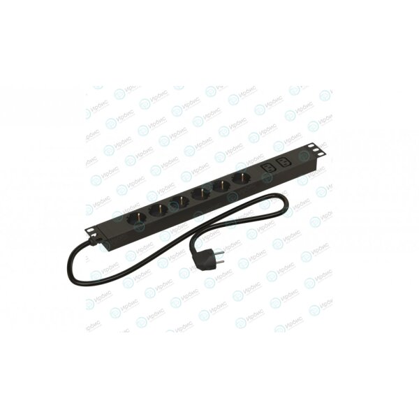 Блок розеток 19", 1U, 6 гнезд (Schuko)+2 гнезда C13, 16А, черн., каб. 2,5м, HL SHE19-6SH-2IEC-2.5EU