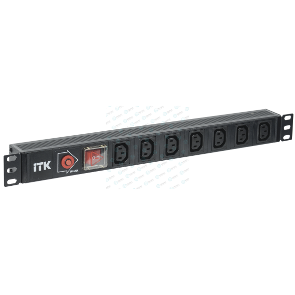 Блок розеток 19", 1U, 7 гнезд, вход C14, 10A, черный, без кабеля, ITK PH13-7C133