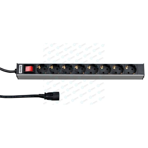 Блок розеток 19", 1U, 8 гнезд (Schuko), 16A, с LED выкл, чер,каб. 2,5м, Hyperline SHT19-8SH-S-2.5IEC