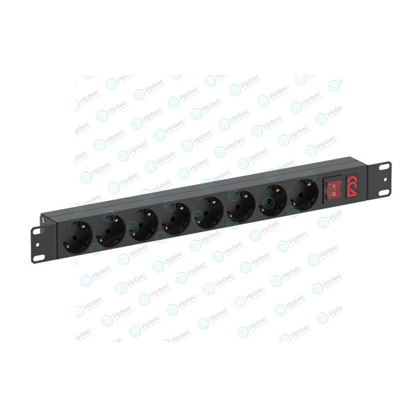 Блок розеток 19", 1U, 8 гнезд (Schuko), вход C14, 10A, с LED выкл, чер, без кабеля, ССД 130411-02069