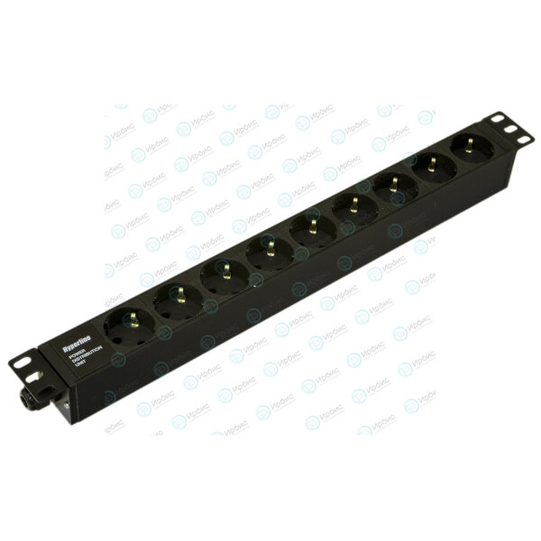 Блок розеток 19", 1U, 9 гнезд (Schuko), 16A, черный, без кабеля, Hyperline SHE19-9SH-CB