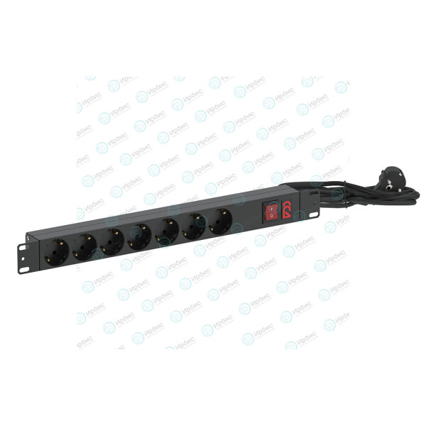 Блок розеток 19", 1U, 7 гнезд (Schuko), вык-ль с подсв., кабель 1.8м, ССД 130411-02072