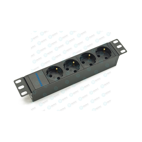 Блок розеток 10", 1U, 4 гнезда (Schuko), вход C14, 10A, черный, без кабеля, DANNMAN 7000190