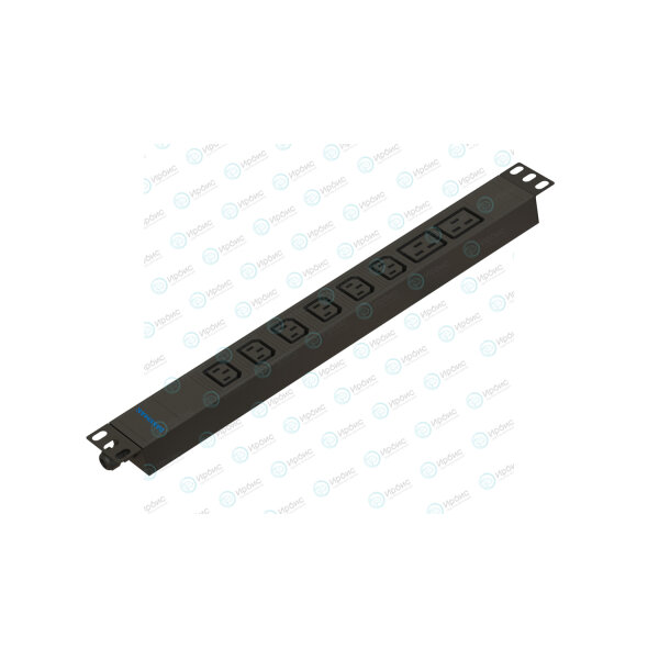 Блок розеток 19", 1U, 6 гнезд C13+ 2 гнезда, вход C19, 16A, черный, без кабеля, DANNMAN 7000770