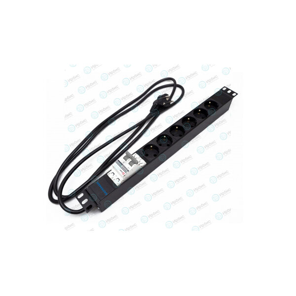 Блок розеток 19", 1U, 6 гнезд (Schuko), 16A, черный, кабель 2,5м, DANNMAN 7000290