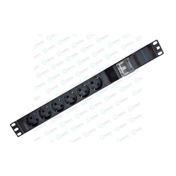 Блок розеток 19", 1U, 6 гнезд (Schuko), вход C14, 10A, черный, без кабеля, DANNMAN 7000820