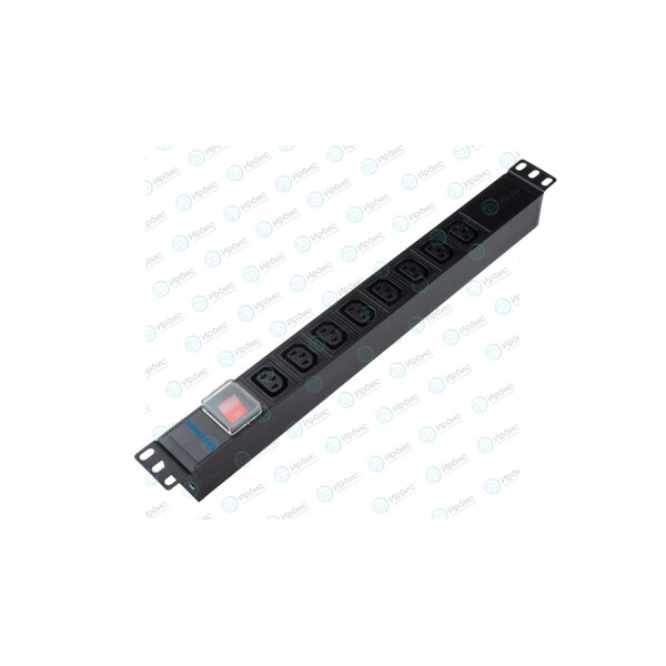 Блок розеток 19", 1U, 8 гнезд, вход C14, 10A, с LED выкл., черный, без кабеля, DANNMAN 7000360